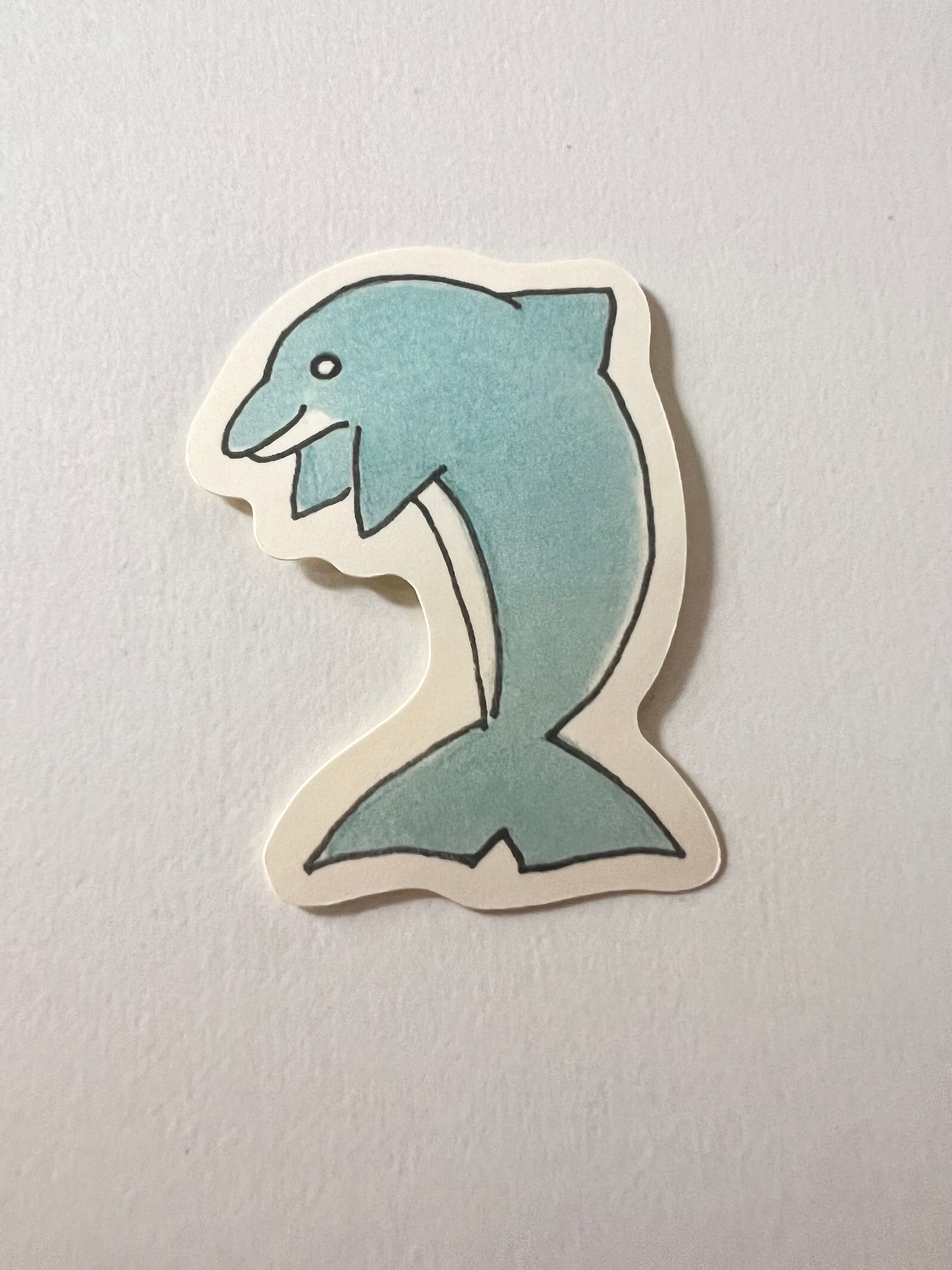 やさしい水色が爽やかな、ゆるかわテイストのイルカのステッカーです。シンプルな線で描かれた表情がなんとも愛らしく、海の仲間を身近に感じられるデザインです。ノートやパソコン、手紙に貼れば、ほんのり海風を感じる癒しのアクセントになります。